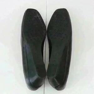 Classic black wedge pumps with a sleek faux-leather finish and modern square toe. Barely worn and in like-new condition—cleaned and disinfected. Stylish, comfortable, and perfect for work or dressy outfits.