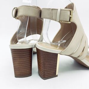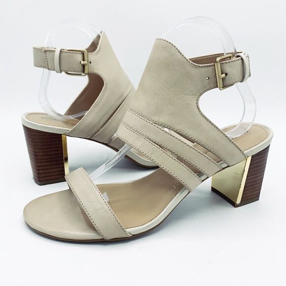 Adrienne Vittadini Pilly Cream Leather Block Heel Sandals 9