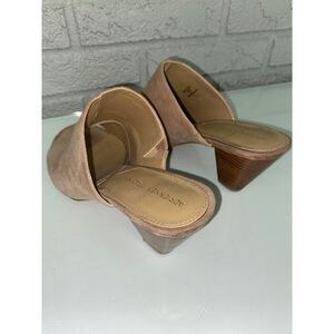 Adrienne Vittadini Women Suede Peep Toe Nude Heeled Sandal Size 8.5