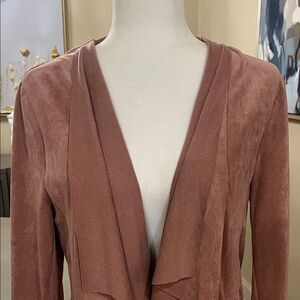 Chic draped front blazer. Soft suede texture. Stylish zippered pockets. Size large.