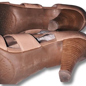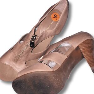 Pre loved Adrienne Vittadini Taupe Heels - 9.5. Wear on soles and leather. Scuffs on heels. Please see pictures for wear. Roughly 3.5” heels