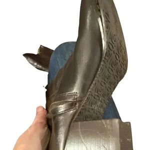 Fabulous riding boots. The leg part is suede with leather and boot is fine leather. Bottoms have been totally resoled. Top of boot has buckle detail and is higher than back.