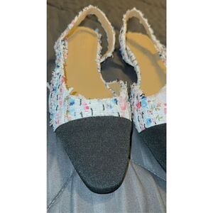 Adrizzlein Womens Slingback Flat Pumps Closed Round Toe Two Toned Casual Flat
