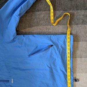 EUC and barely worn. Top notch quality construction, as you expect from Adsum. Heavier weight windbreaker, similar to 90s collegiate popovers. I believe it's sized to accommodate heavier layers underneath (e.g. a hoodie). Water resistant.