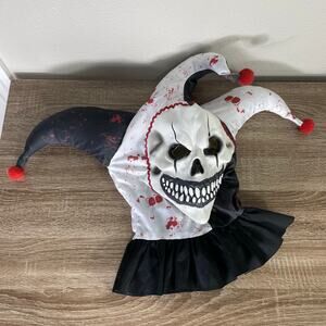 Adult Evil Jester Skull Mask Hood One Size Bloody Joker Halloween Costume Prop Carnival Evil