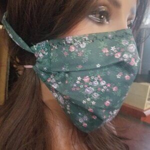 Adult Face Masks - Floral on Green - Filter Pocket - Roomy - Breathable