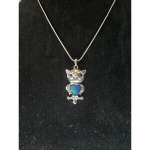 Adult Jewels Silver Tone Necklace Owl Pendant with Blue Cabachon