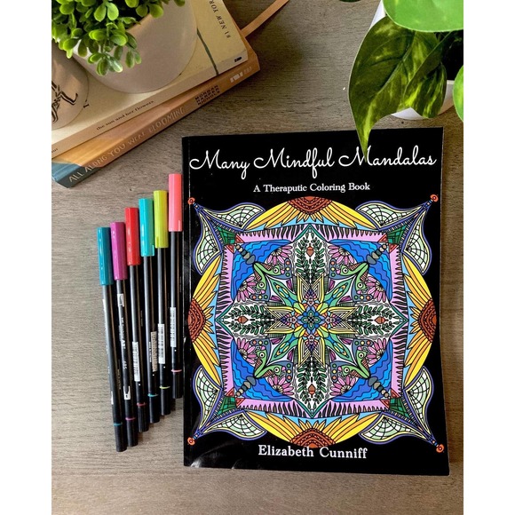 Dive into therapeutic coloring! This coloring book is great for adults and older kids and features mandalas of varying degrees of difficulty. Nearly 40 mandalas, a few holiday mandalas, and over 12 animal zentagles ranging from house cat to prehistoric dinosaur. Blank on the back to protect from marker bleed and to allow for display. A wonderful way to occupy the mind and the hands. Get yours today! For more art by me, you can check her out on socials @cunniffcreations.