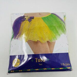 Adult One Size Fits Most Glitter Mesh Tutu Skirt in Purple/Gold/Green