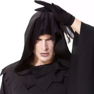 Cross over to the dark side in this Phantom of Darkness Costume! This Phantom of Darkness Costume features a long, black hooded robe with a detachable face veil.
