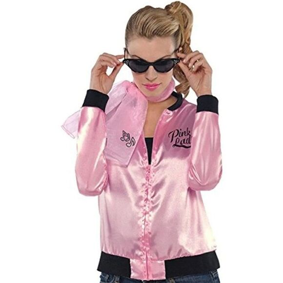 women, costume, grease, Halloween costume, pink ladies, women costume, silk jacket, costume size lg, 50's, Skit, dress up, pretend, seasonal, plus size, rydell high, 60's, Grease lightening, spirit halloween, event, party, october, special event, theme, work fantasy play, vogue, rubies, spirit, rubies costume, new, top rated