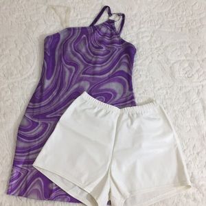 Adult Small Curtain Call Dance Costume, Includes top and shorts, Has some minor stains as pictured