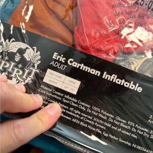 New never used. Adult South Park Eric Cartman inflatable costume. The size is OSFM. Comes as shown in the photos. Ask any and all questions. No returns.