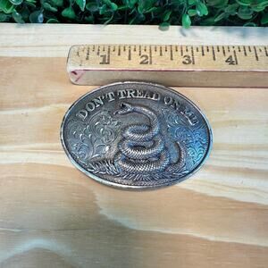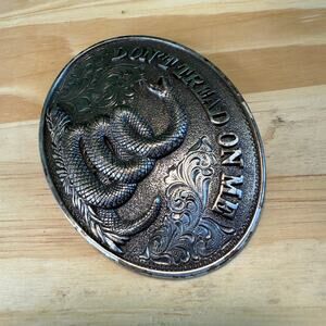 Adult Western Belt Buckle DON'T TREAD ON ME Snake Silver Tone