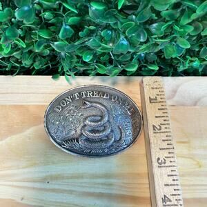 Adult Western Belt Buckle DON'T TREAD ON ME Snake Oval Silver Tone Gift Cowboy
