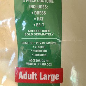 Worn only once, slip over dress very roomy, mini skirt length. Includes dress, hat and belt only. . Size is a Large. appx- 12-14.