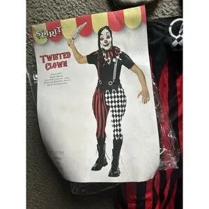 Adult XL Spirit Halloween TWISTED CLOWN Costume W/ Mask & Accessories