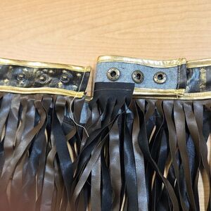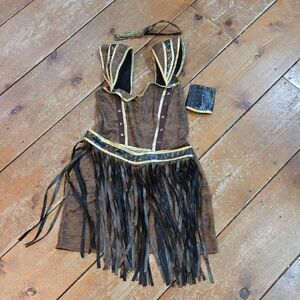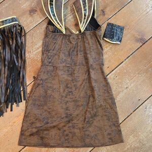 There's no better way to show off your strength and willpower this Halloween than by strutting your stuff at the costume party in this Warrior Queen Costume. With the included warrior queen dress with matching arm cuffs ( missing one arm cuff) and headpiece you'll be looking fierce all night. Complete your look with the included belt with fringe and you'll be ready for any adventure that awaits this Halloween. This is an adult size small.