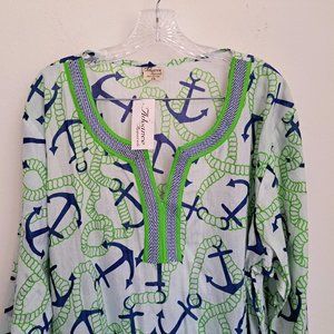 Advance Apparels Coastal Cotton Top Print Anchor Knot Multicolor Size 2X…