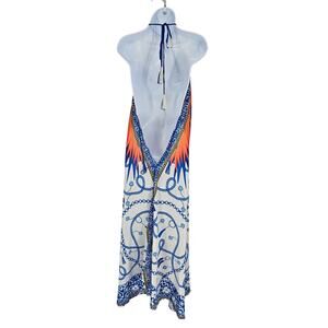 Advance Free Size Floral Halter Dress 100% Silk Swimsuit Coverup w/ Rhinestones