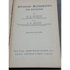 Explore the depths of engineering mathematics with H.E. Reddick's "Advanced Mathematics for Engineers," 2nd edition. This vintage hardcover book from 1938 is in used condition, with writing inside and a binding that's coming apart, yet it remains a valuable resource for enthusiasts and collectors.
