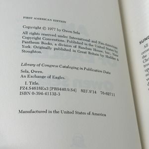 AN EXCHANGE OF EAGLES is without doubt Owen Sela's best and most ambitious book to date. Brilliantly researched, this documentary novel is set in Washington, Berlin, and Geneva during the most crucial months before our war, at a time when the fate of the Western world hung precariously in the balance. Two men have the unique opportunity to change the course of the world. Their motives diller, but their goal is ultimately the same.