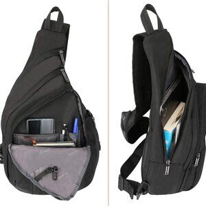 Features: This versatile sling backpack offers multiple compartments—perfect for tablets, Kindle, phone, and everyday gadgets. Adjustable padded strap ensures all-day comfort, whether you're on the go to work, gym, or a festival. Water-resistant polyester keeps your belongings safe, and the soft shell material feels lightweight and durable. A thoughtful, spacious design with easy access to all your essentials.