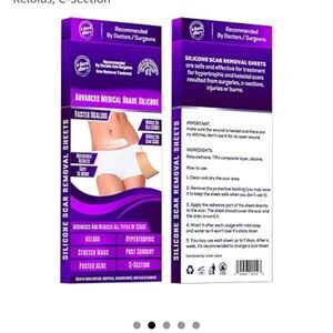 Experience effective scar reduction with Advanced Medical Grade Silicone Scar Removal Sheets. These purple sheets are designed to minimize the appearance of scars from surgery, injury, and more. Trusted by professionals, they offer a reliable solution for smoother skin.