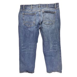 Tailored for the big and tall man, these size 48 jeans feature a relaxed fit that moves with you, thanks to the stretch denim fabric. The classic medium wash provides a versatile look that's easy to pair with any casual top. The five-pocket design keeps essentials close, while the zip and button closure ensures a secure fit. Measure 44x27.