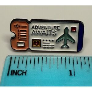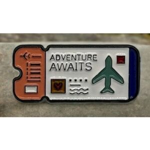 Adventure Awaits AirPlane Multicolor Ticket Metal Enamel Pin