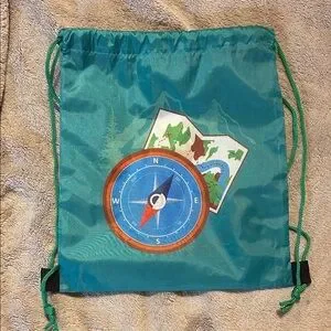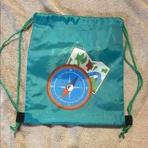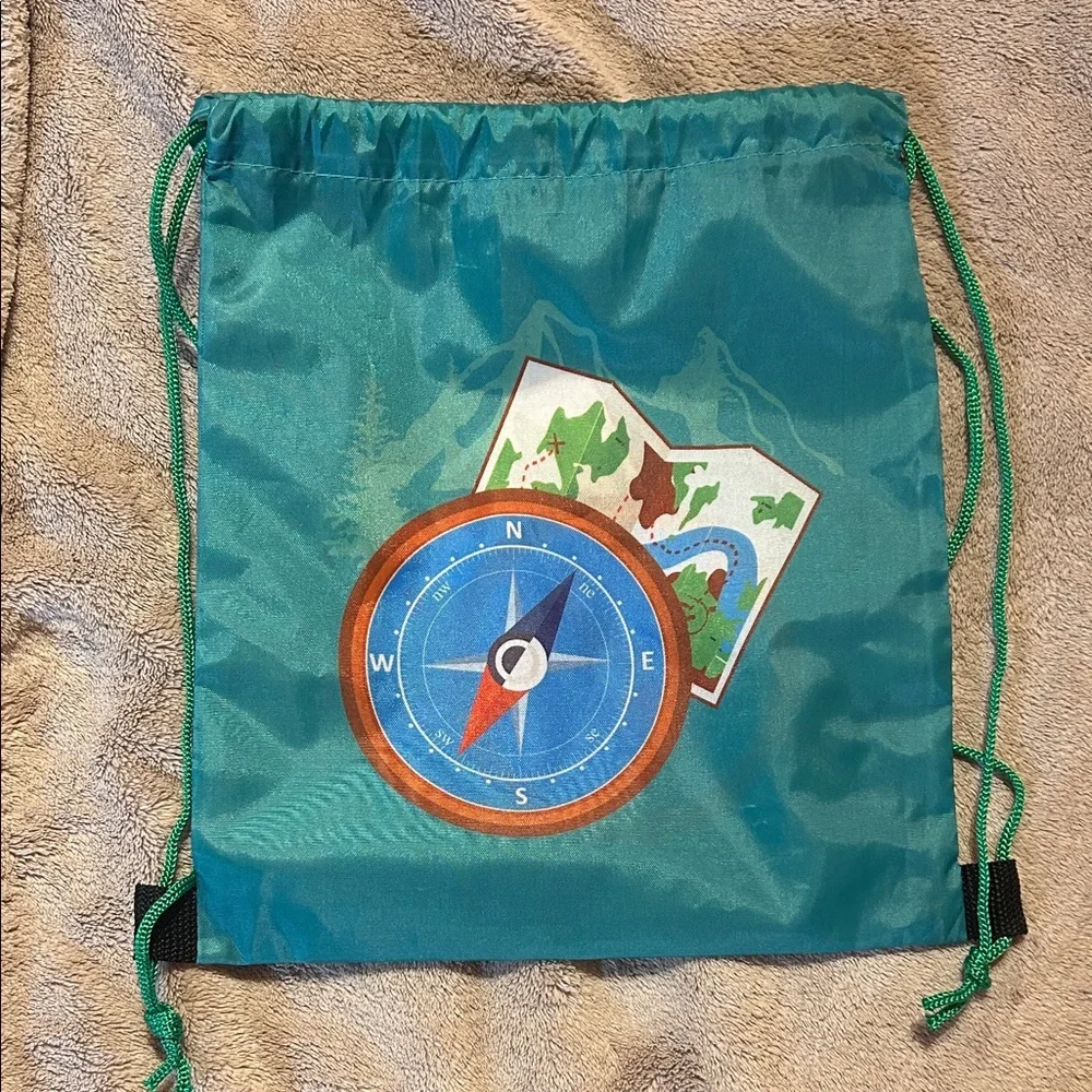 drawstring backpack with compass and map design. Ideal for explorers.