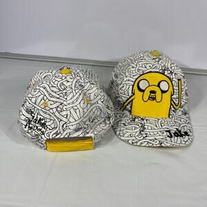 This Adventure Time “Jake the Dog” adjustable cap is a fun and collectible piece for any fan of the Cartoon Network series. Designed with a bold yellow Jake patch on the front panel, the hat features an intricate allover maze-style graphic print that includes multiple black-and-white character illustrations. The contrast between the bright yellow details and the playful artwork gives the cap a standout look that instantly reflects the quirky style of the show.
