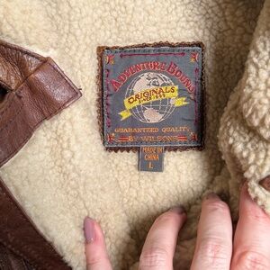 Aviator style bomber jacket. Beautiful vintage leather jacket with additional detailing on sleeves and back of jacket. Sherpa lined with faux shearling and a nylon material in the arms. Feels like there may be a slight shoulder pad. Large interior pocket. This jacket looks like an authentic ww2 jacket. PLEASE NOTE: this is a vintage piece. There are some signs of wear including some rubbed areas on the sleeves, a few very small discolorations, and a small damaged spot on the back of the jacket. Overall still very good condition for vintage leather. Photos of examples of wear are included in the listing