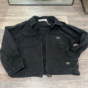 Advisory Board Crystals Black Canvas Jacket in XXL. This jacket is pre-owned and has a broken zipper. While the zipper needs repair, the jacket itself is in otherwise good condition and ready for a new home. Don't miss out on this unique piece!