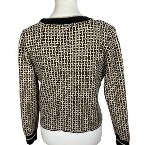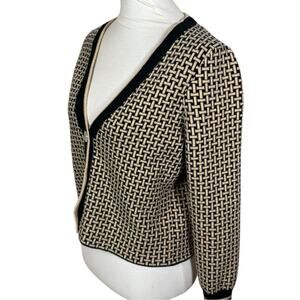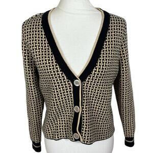 Ady P Herringbone Tan and Black Classic V Neck Cardigan Size M