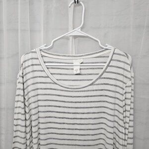 Ady P White Gray Striped Long Sleeve Casual Tee Nautical 3X