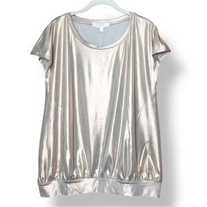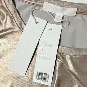 Adyson Parker NWT Liquid Jersey Short Sleeve Top 1X champagne gold shimmer neutral metallic dressy blouse beige taupe