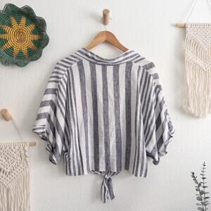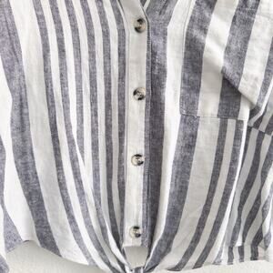 Adyson Parker Stripe Black White Linen Blend Casual Button Down Shirt Size Large