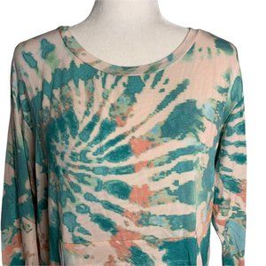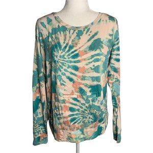 Adyson Parker Tie Dye Athletic Top M Pink Green Kangaroo Pocket Zip Thumb Holes