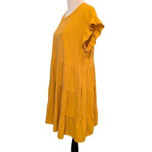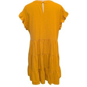 Adyson Parker Womens Size L Yellow Gold Linen Rayon Tiered Ruffled S/S Dress