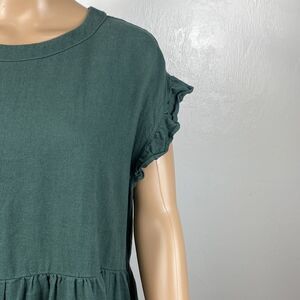 Adyson Parker Green Linen Tiered Shift Mini Dress Size L