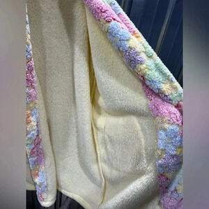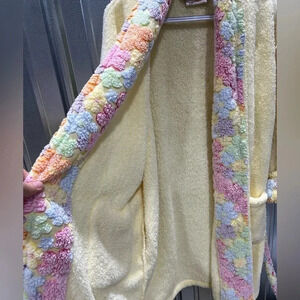 Aegean Floral Fleece Robe Blue Yellow Bath Pastel One Size Soft OS Winter Fall