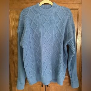 A timeless classic for colder days — this crewneck sweater features vintage-inspired cable knit patterns that bring texture and charm. The soft, structured silhouette makes it a versatile layering piece for any autumn or winter wardrobe. Size medium.