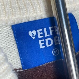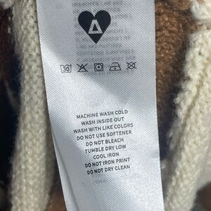 Cableknit like textures and striped pattern with a crewneck and ribbed edges. This is so cozy and gives off the perfect “grandpa sweater” look.