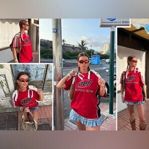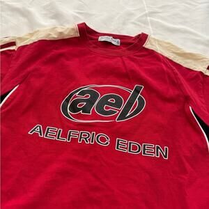 Discover the vibrant style of Aelfric Eden with these red and black short sleeve tees, perfect for casual outings or athletic activities.