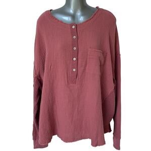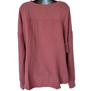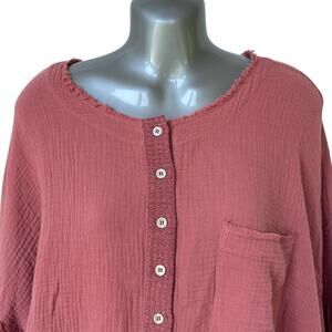 Aemi & Co Top Mauve Dusty Pink Oversized Shirt Boho Blouse Women's Size Large