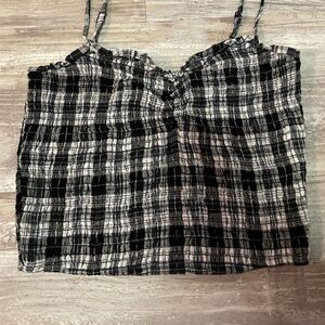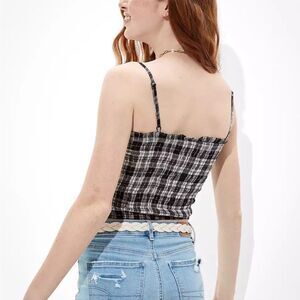 Aeo Sweetheart neck Skinny straps Ruched details Smocked details Plaid pattern