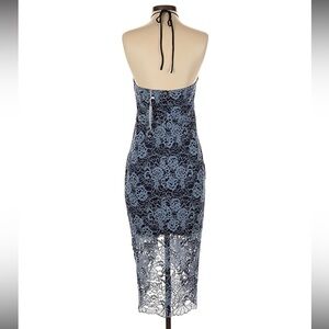 Aeom Sleeveless Halter Blue Lace Midi Dress
