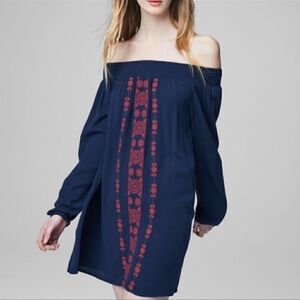 Aeoropostle Navy/Red Embroidered off The Shoulder Dress. Size Small.
