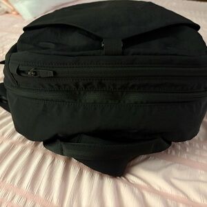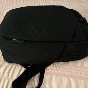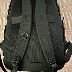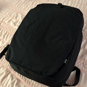 Versatile black backpack designed for daily use. Smooth exterior with streamlined pockets for organized storage. Comfortable padded straps for extended wear. Durable construction for reliable performance.